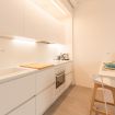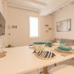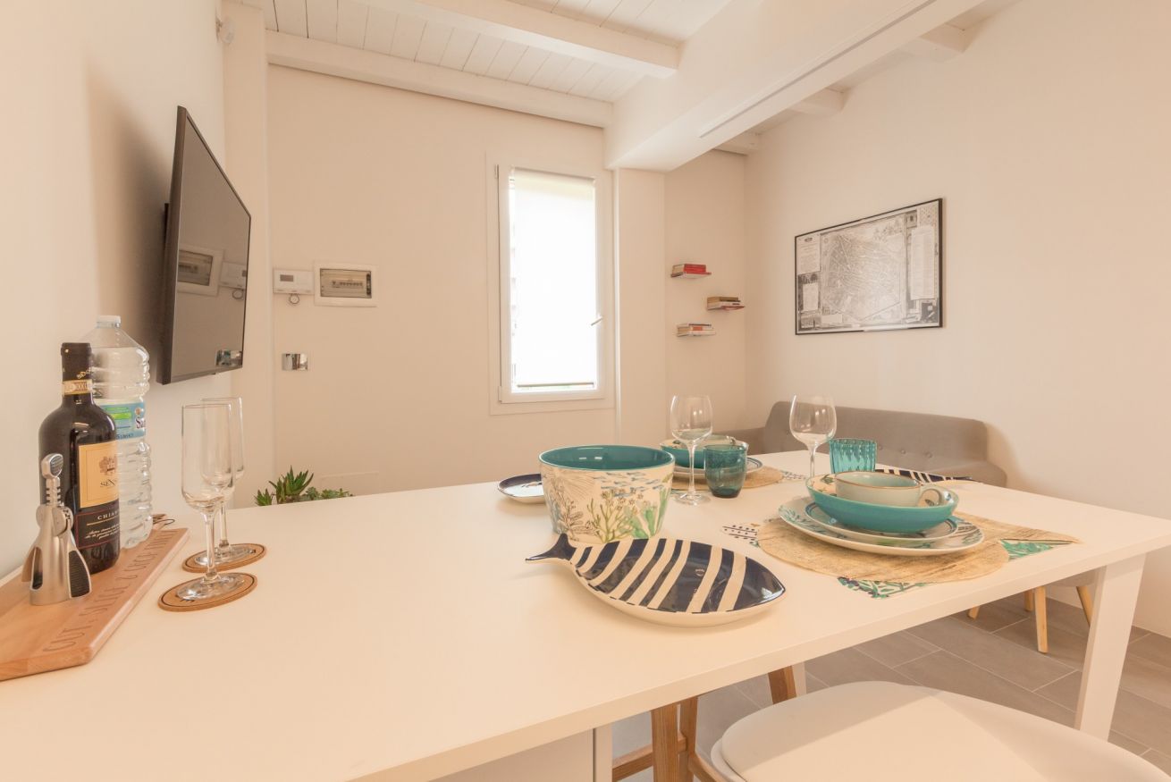 Varcando la porta di ingresso ci si trova nella zona giorno composta da un elegante angolo cottura attrezzato con lavastoviglie, forno elettrico e piano cottura ad induzione. Troviamo poi un tavolo capace di ospitare due persone ed un divano di fronte al quale si trova una smart tv 49 pollici con schermo piatto.