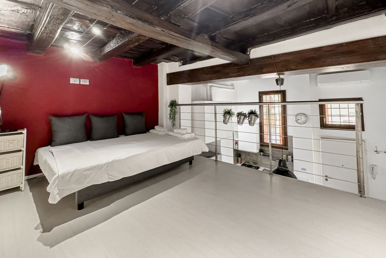 L'appartamento è situato in una tranquilla via del centro storico di Bologna, a pochi passi da Piazza Maggiore, Due Torri e altri luoghi d'interesse. L'appartamento è al piano terra di una tipica casa bolognese e si compone di una camera da letto matrimoniale, un soggiorno con divano letto matrimoniale nel soppalco, una cucina attrezzata e un bagno con doccia. L'appartamento è arredato in modo confortevole e curato e offre tutti i servizi necessari per un soggiorno piacevole.