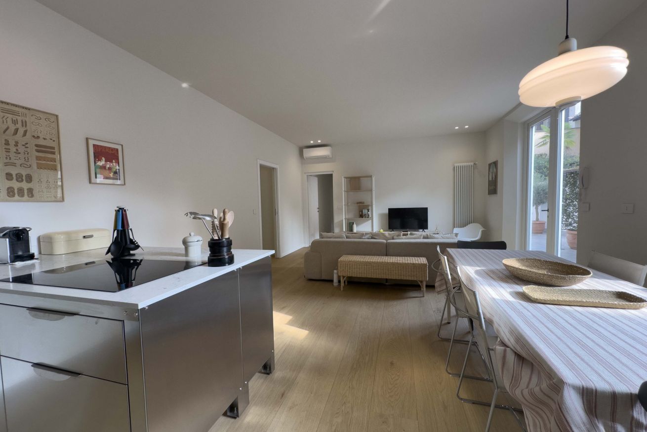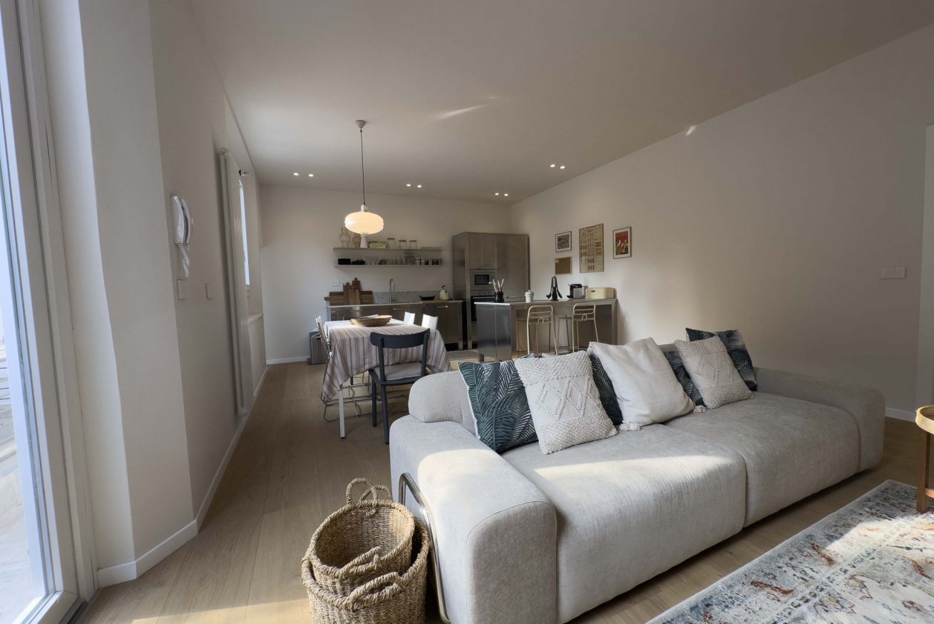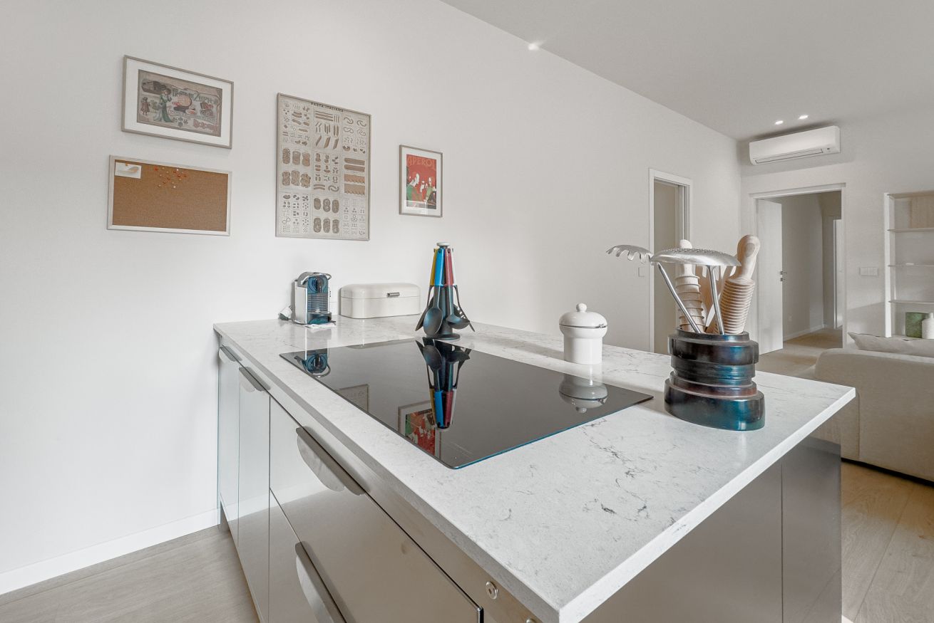 L'appartamento è finemente arredato con mobili di design e dispone di tutti i comfort necessari per un piacevole soggiorno ed è composto da sala con angolo cottura completamente attrezzato, tre camere da letto matrimoniali, due bagni ed un ampio terrazzo.