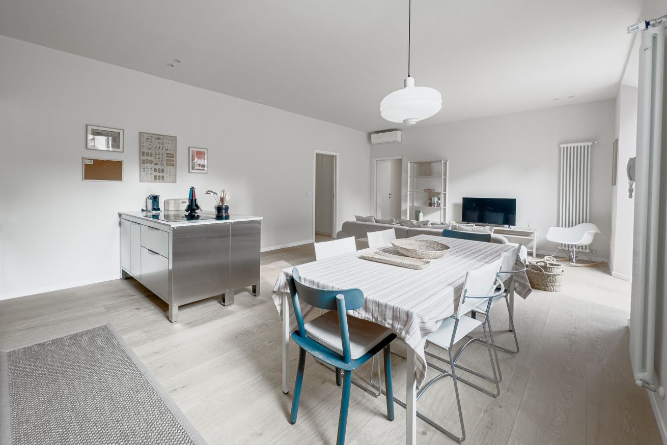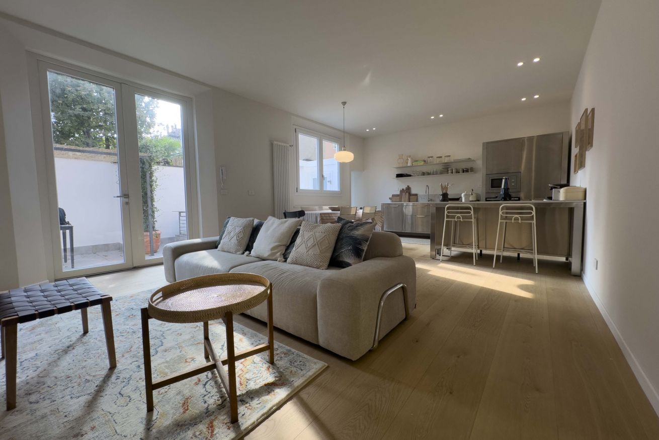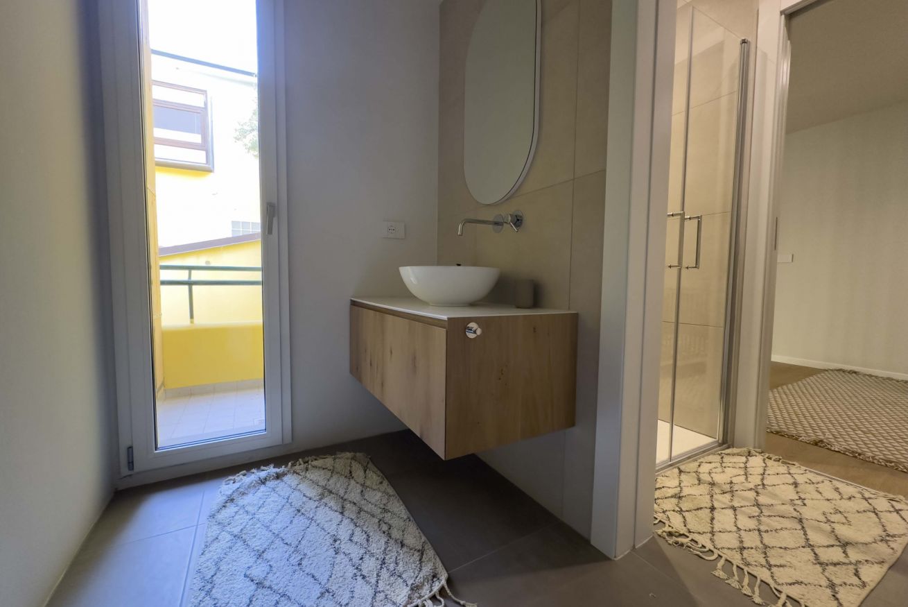 L'appartamento è finemente arredato con mobili di design e dispone di tutti i comfort necessari per un piacevole soggiorno ed è composto da sala con angolo cottura completamente attrezzato, tre camere da letto matrimoniali, due bagni ed un ampio terrazzo.