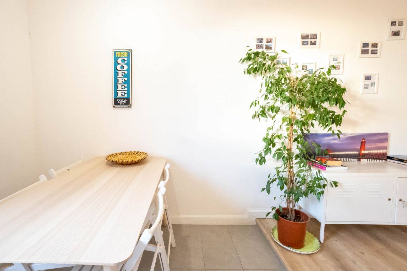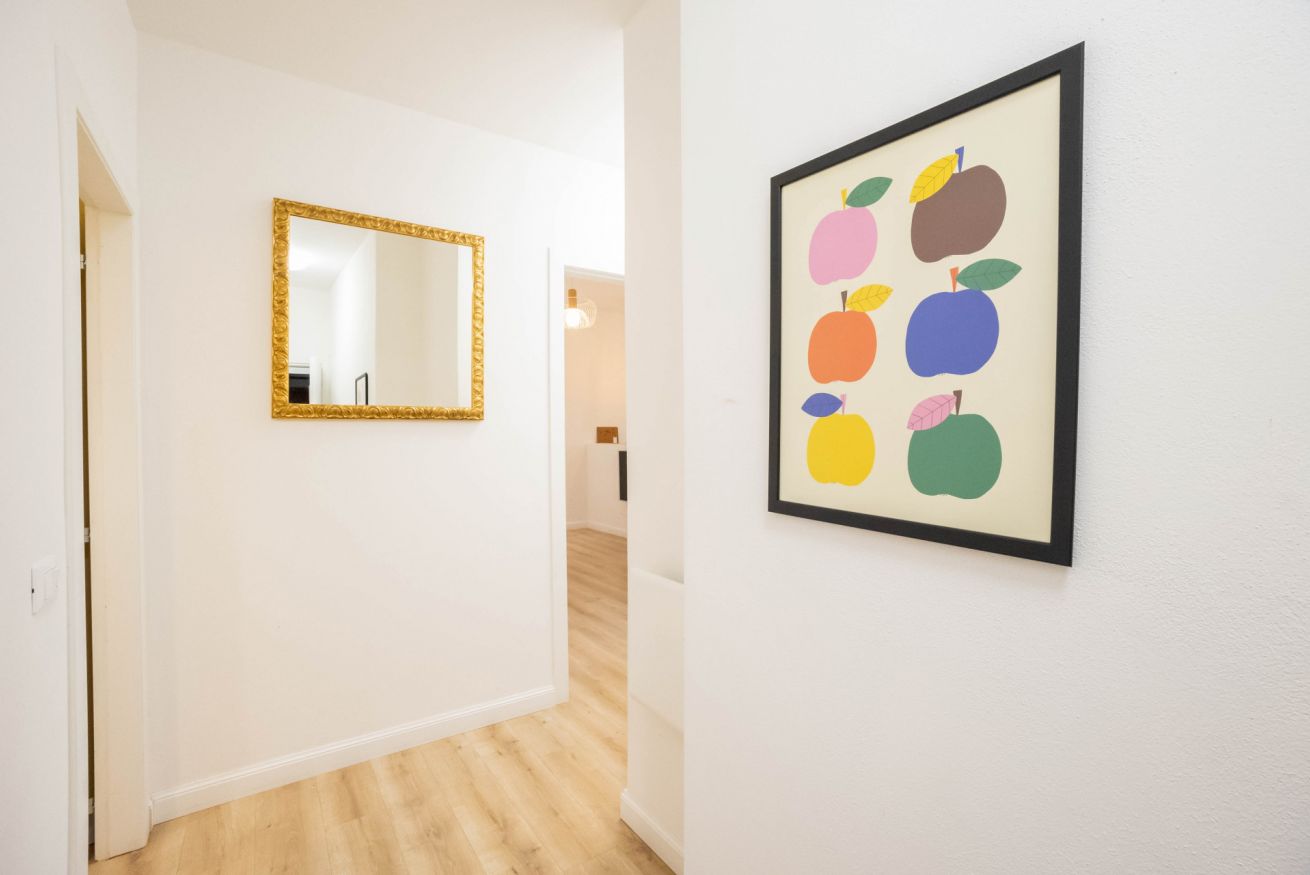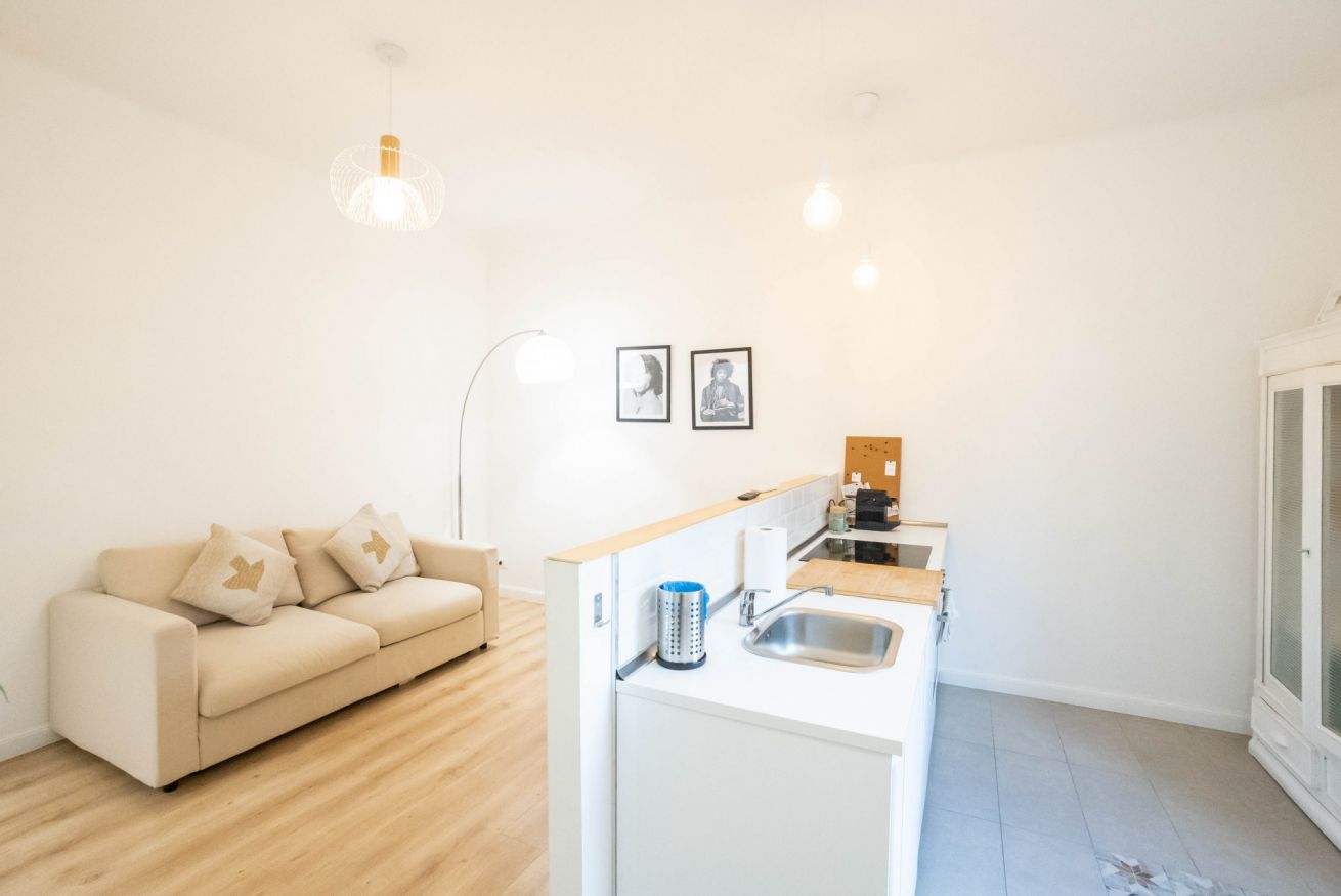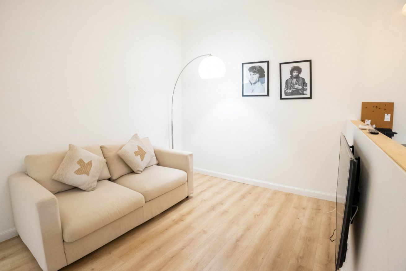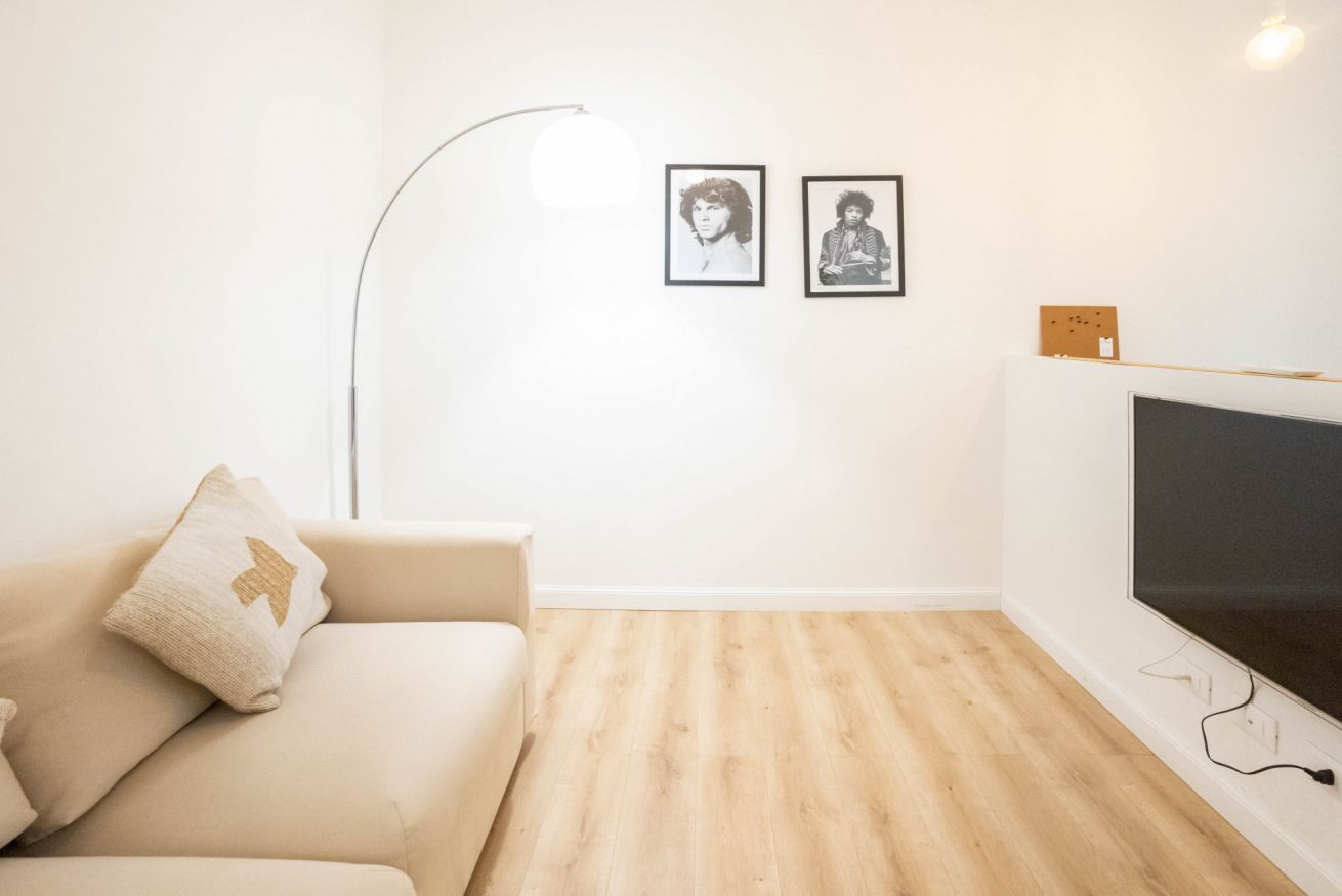 L'appartamento, al secondo piano senza ascensore, si apre su uno spazio che comprende un divano, che si può aprire e può ospitare due persone, una tv, un tavolo con sedie e un angolo cucina con utensili, piano cottura, frigorifero, lavastoviglie e macchina per il caffè. In camera è presente un armadio, una scrivania e un comodo letto matrimoniale. Infine è presente un bagno con bidet, box doccia e lavatrice.