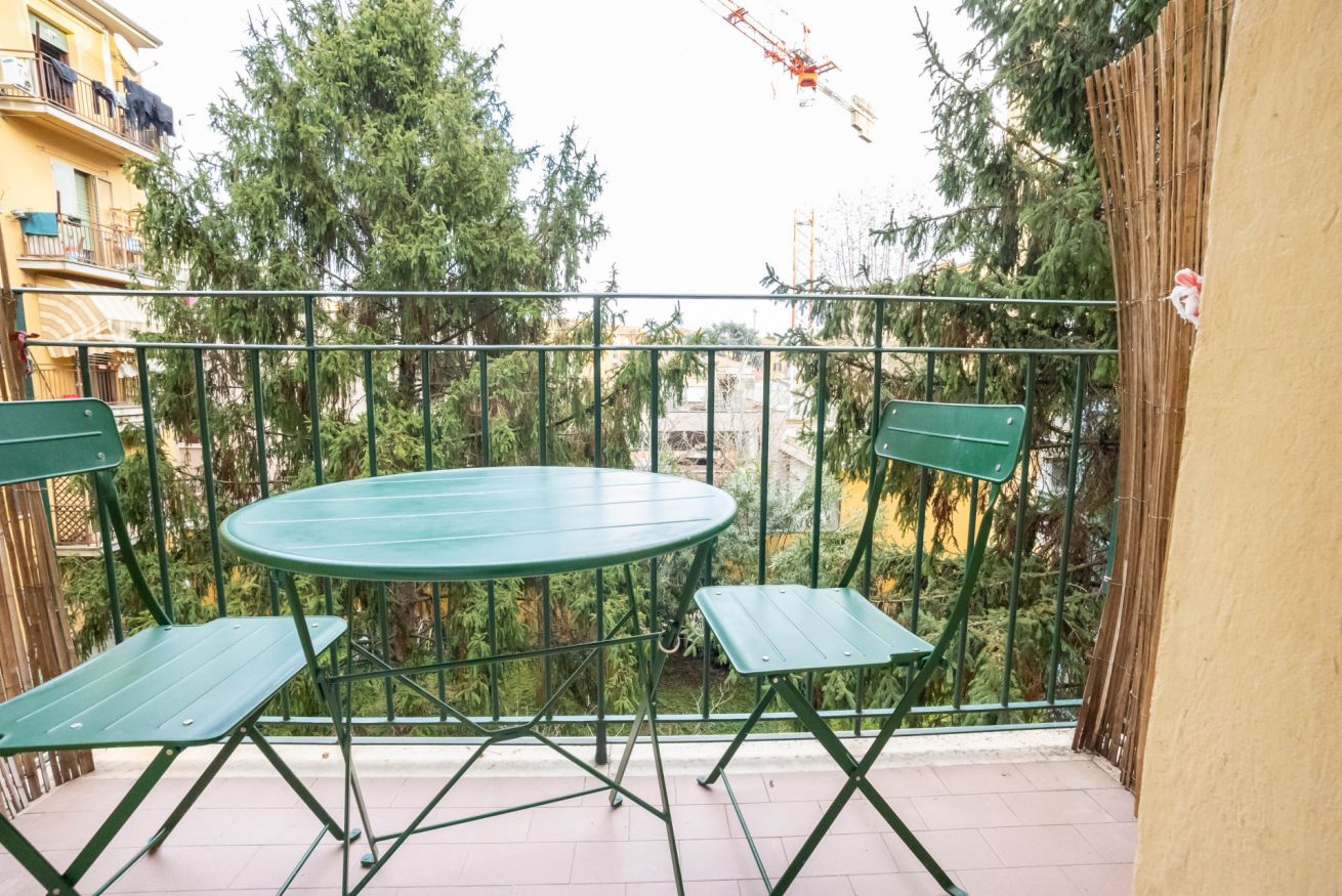 Completa l'ambiente un piccolo balconcino con tavolo e sedie.
