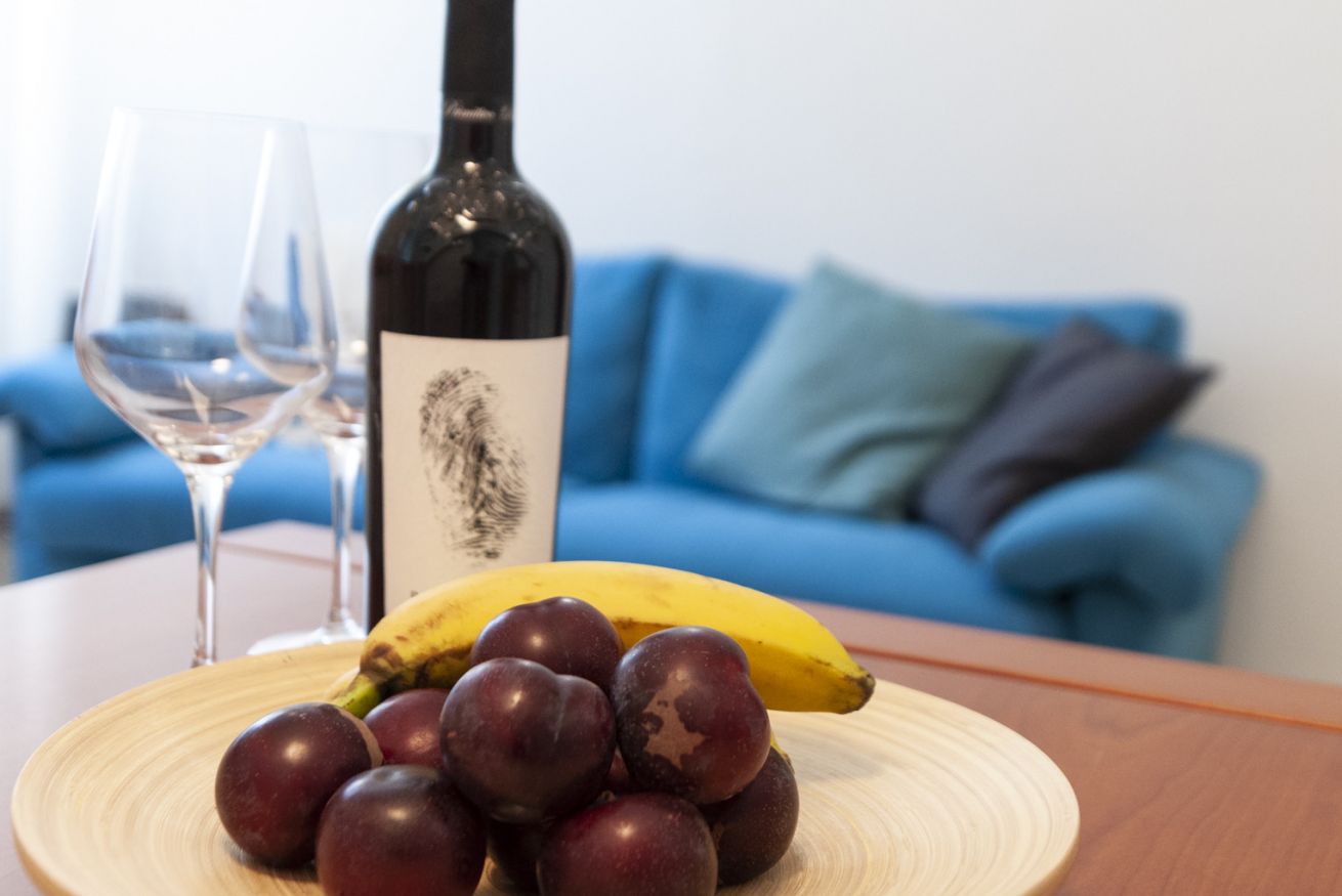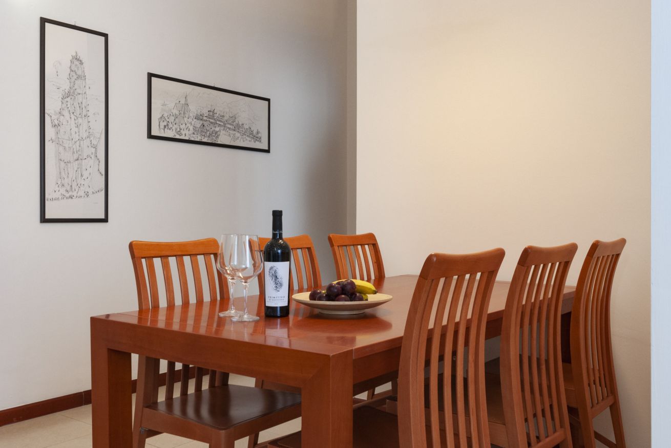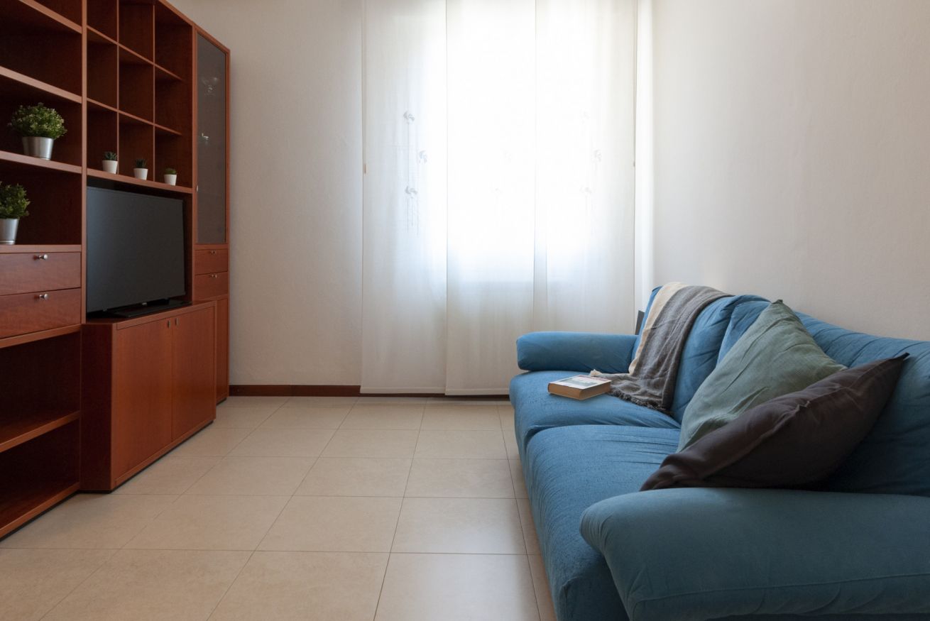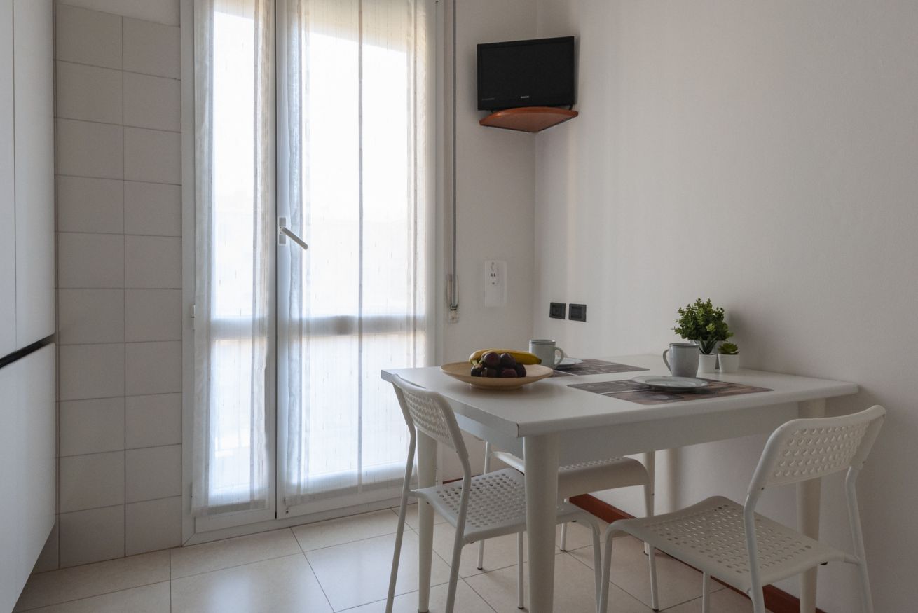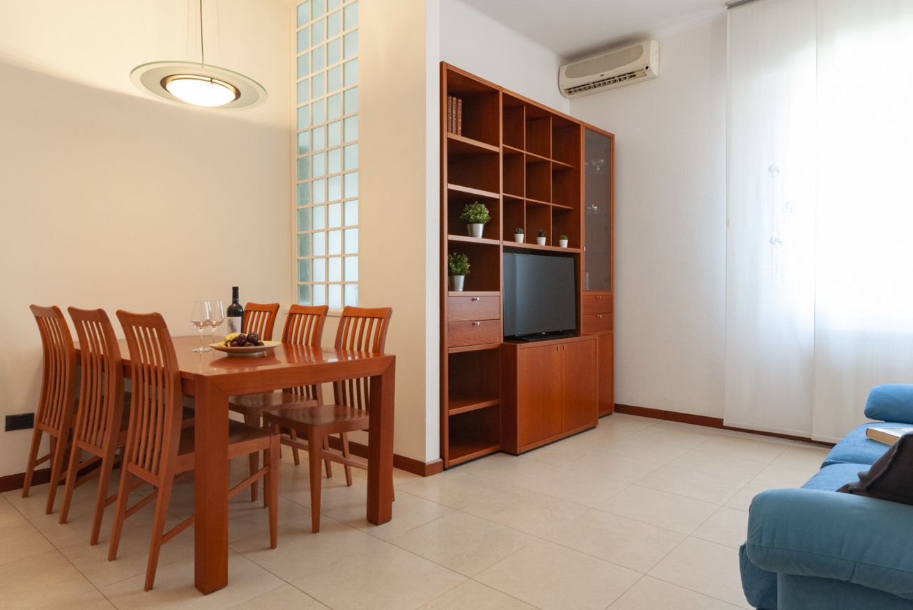 Varcando la porta di ingresso troviamo il soggiorno composta da un comodo divano ed una tavolo in grado di ospitare fino a 6 persone.