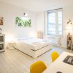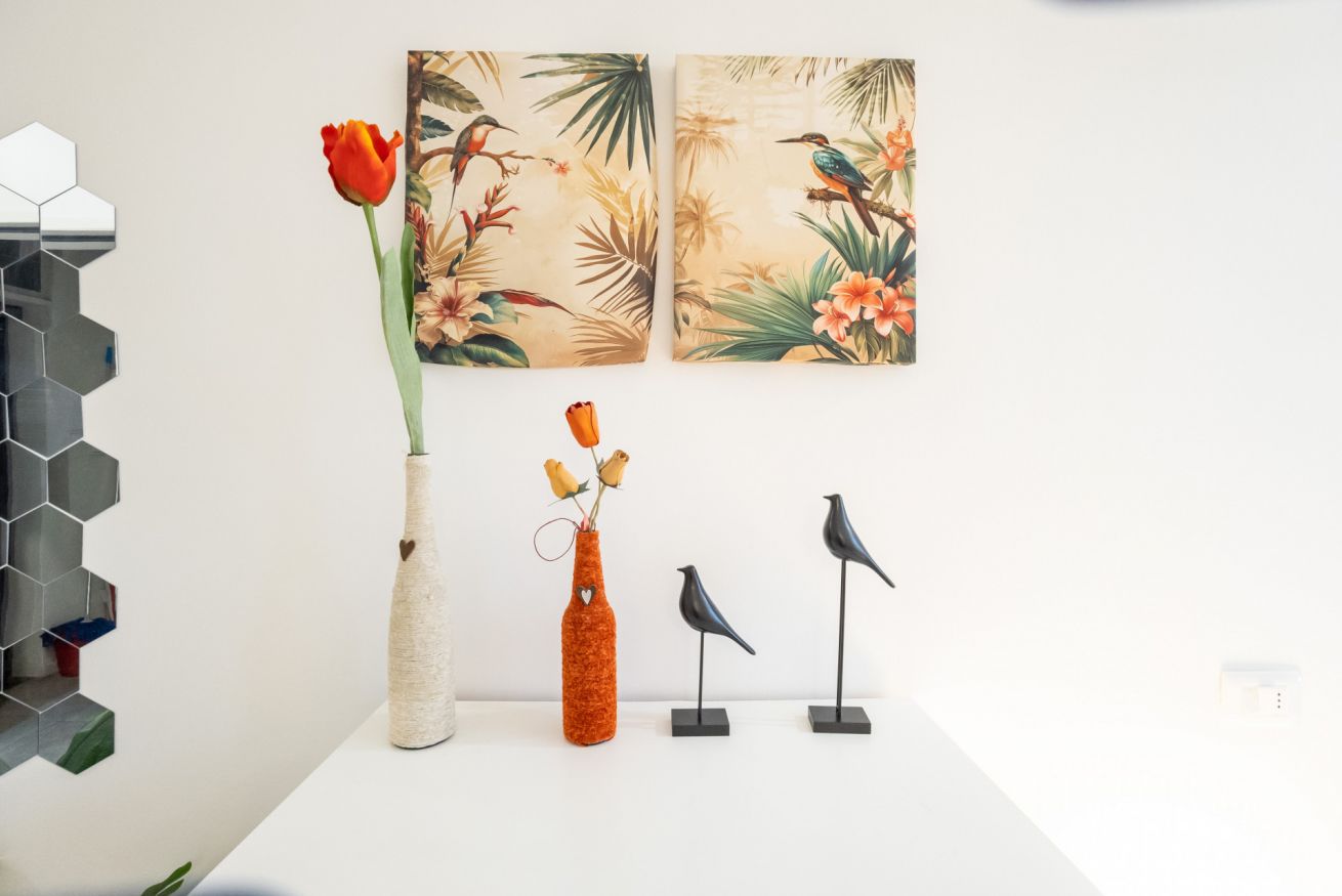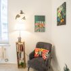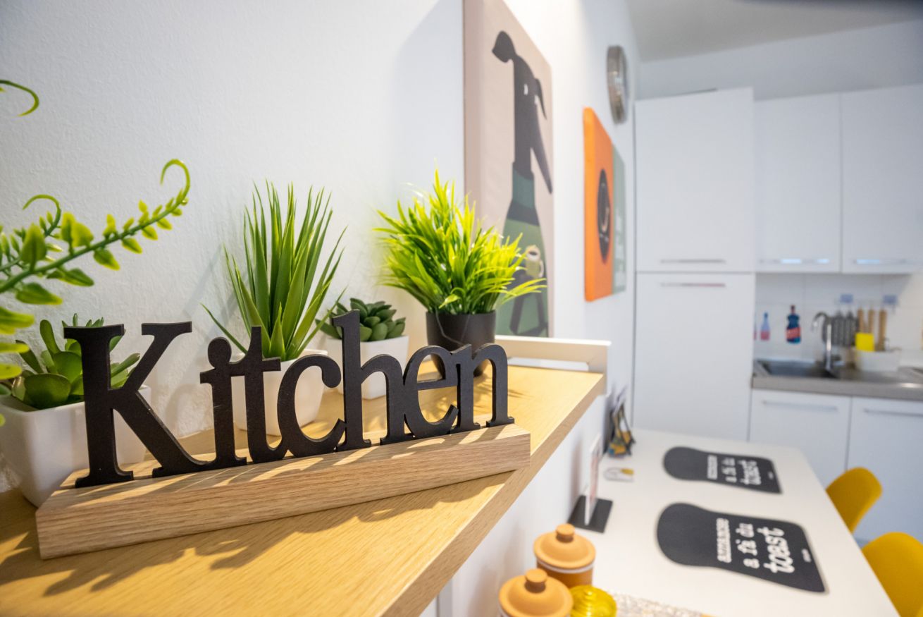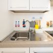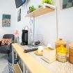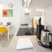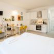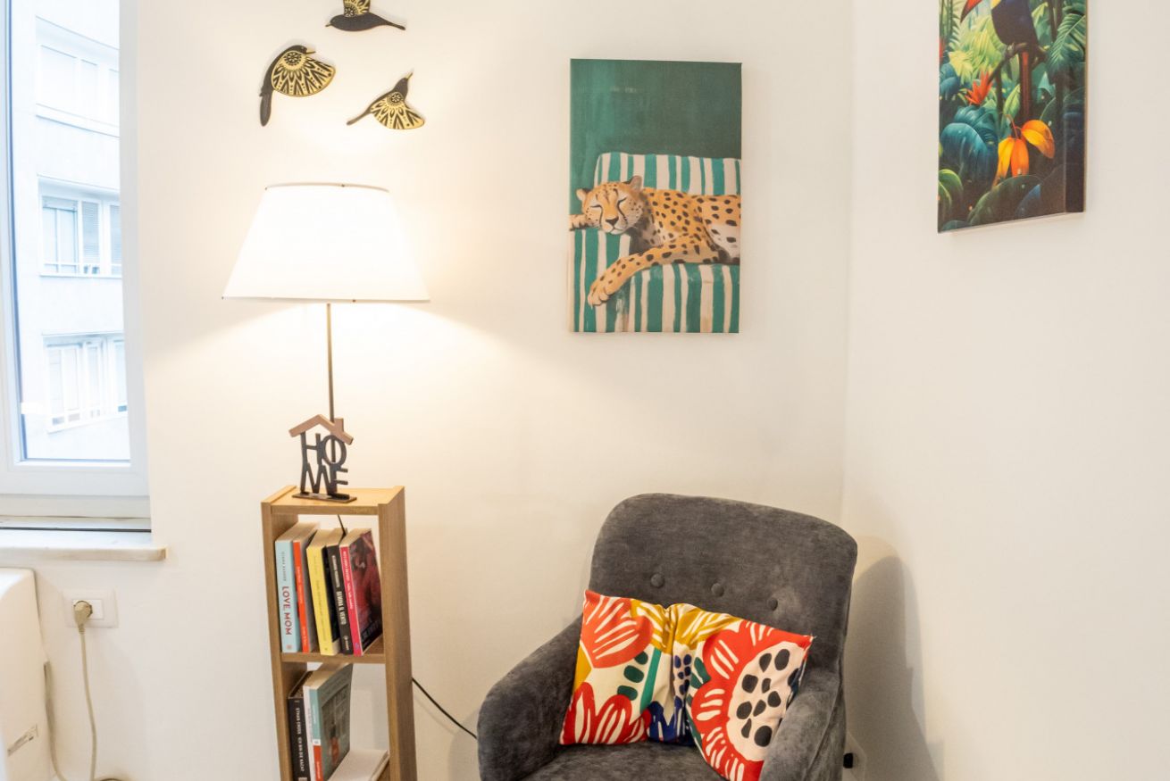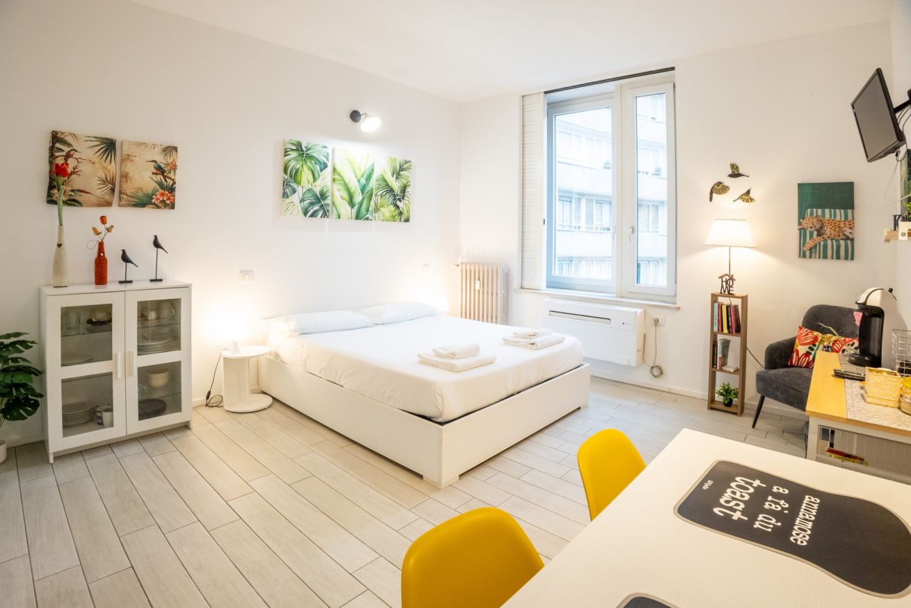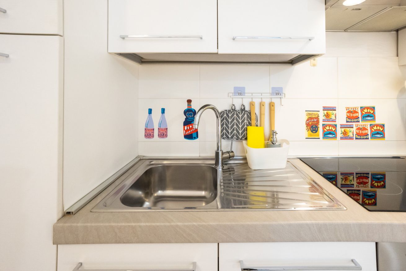 L'appartamento, dotato di aria condizionata, è stato ristrutturato di recente con grande cura nella scelta dei materiali. L'accogliente ingresso si apre sul vano unico che comprende la zona living con tavolo da pranzo capace di accogliere 2 persone e l'angolo cottura dotato di forno elettrico, piano cottura ad induzione, frigo e microonde oltre a bollitore e macchina per il caffè.