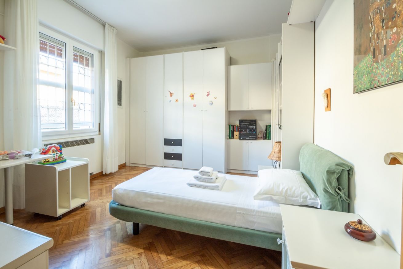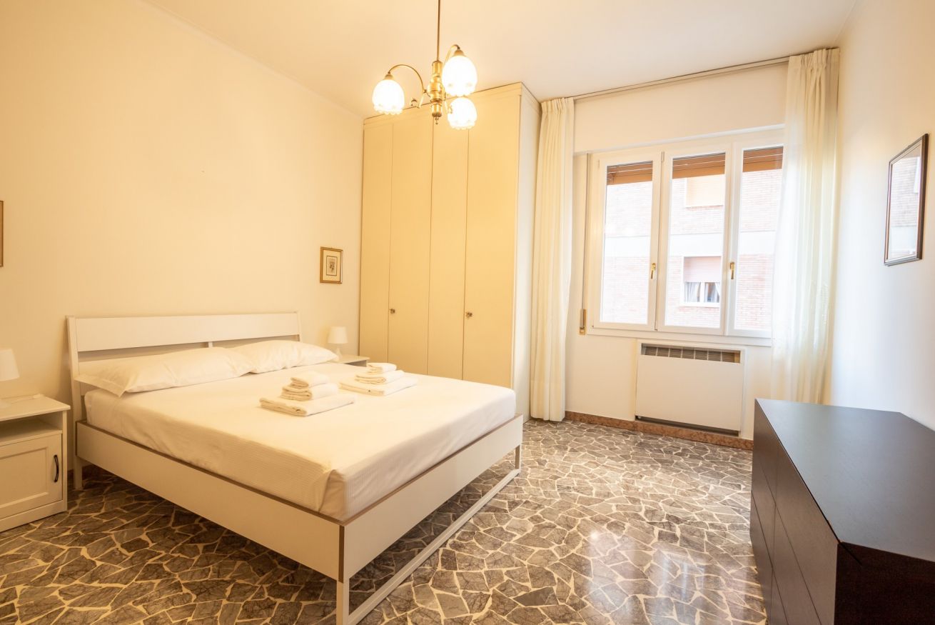 Accogliente appartamento di ampie dimensioni al primo piano dotato di 3 camere da letto e 2 bagni in zona strategica del centro storico di Bologna.