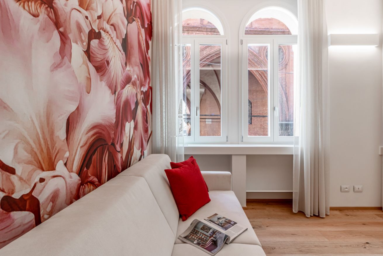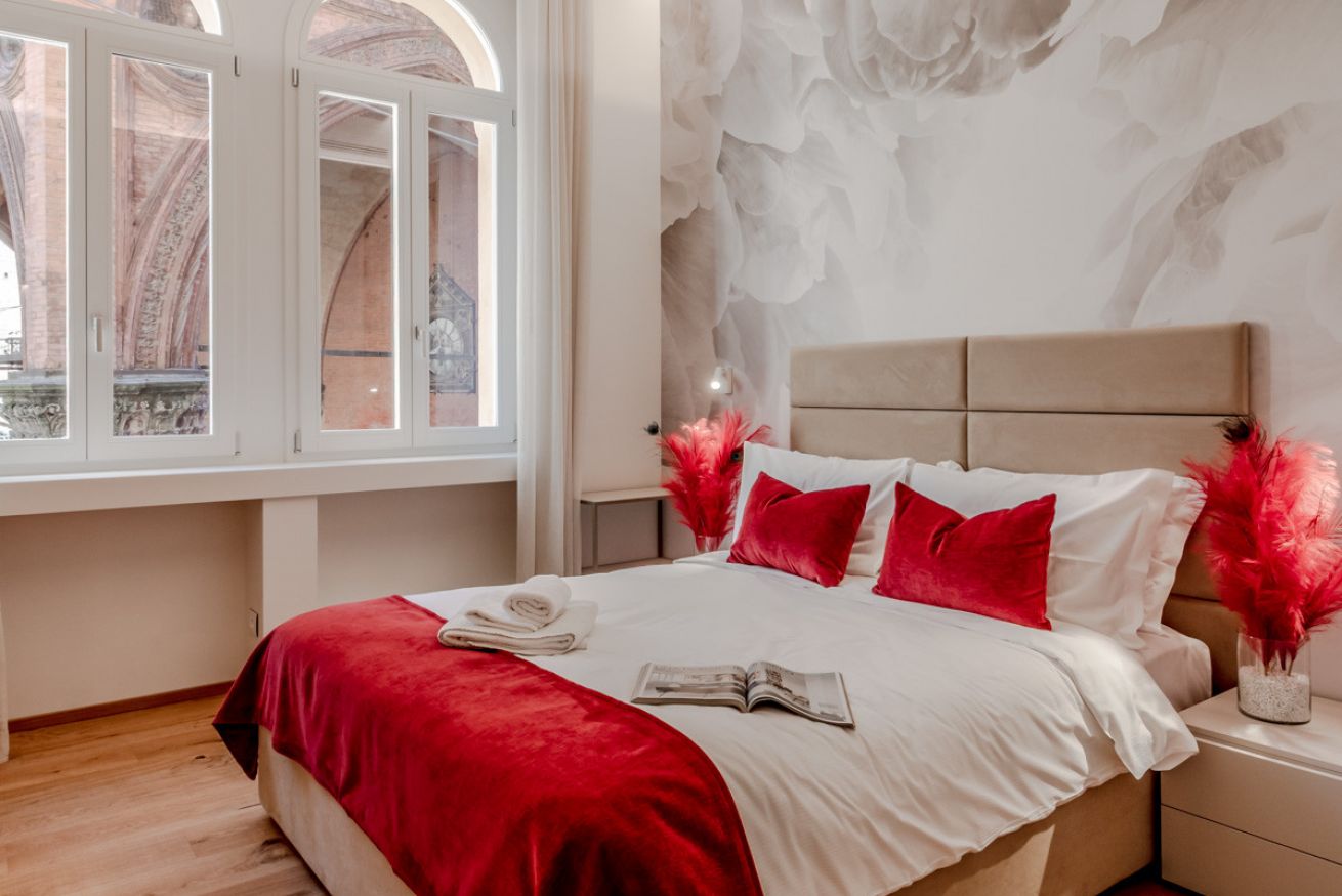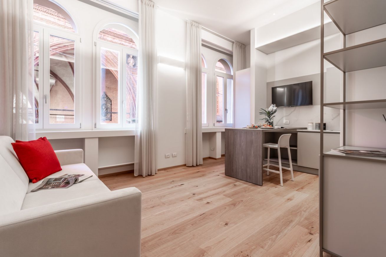 Moderno e sofisticato appartamento dotato di tutti i comfort situato in pieno centro a Bologna.