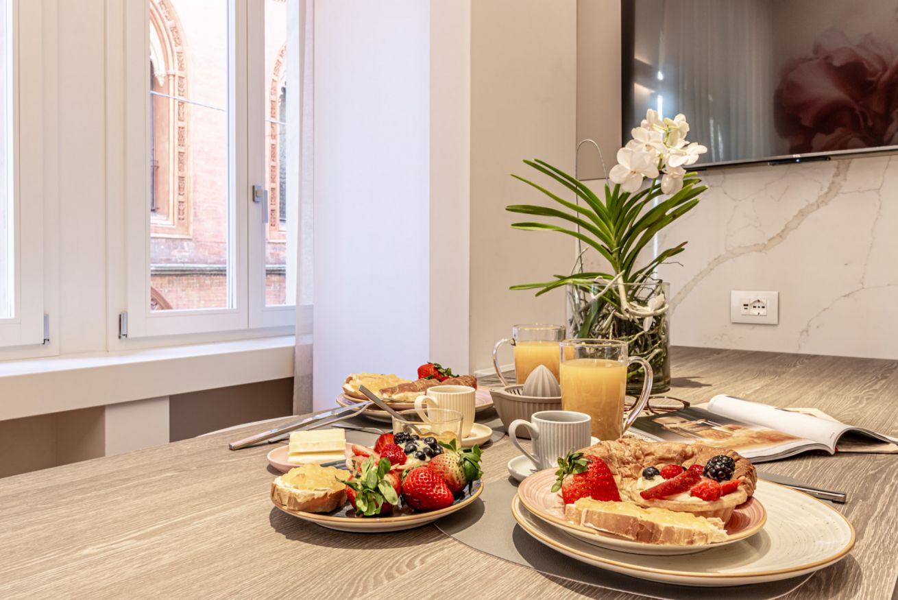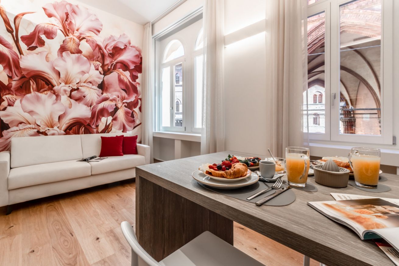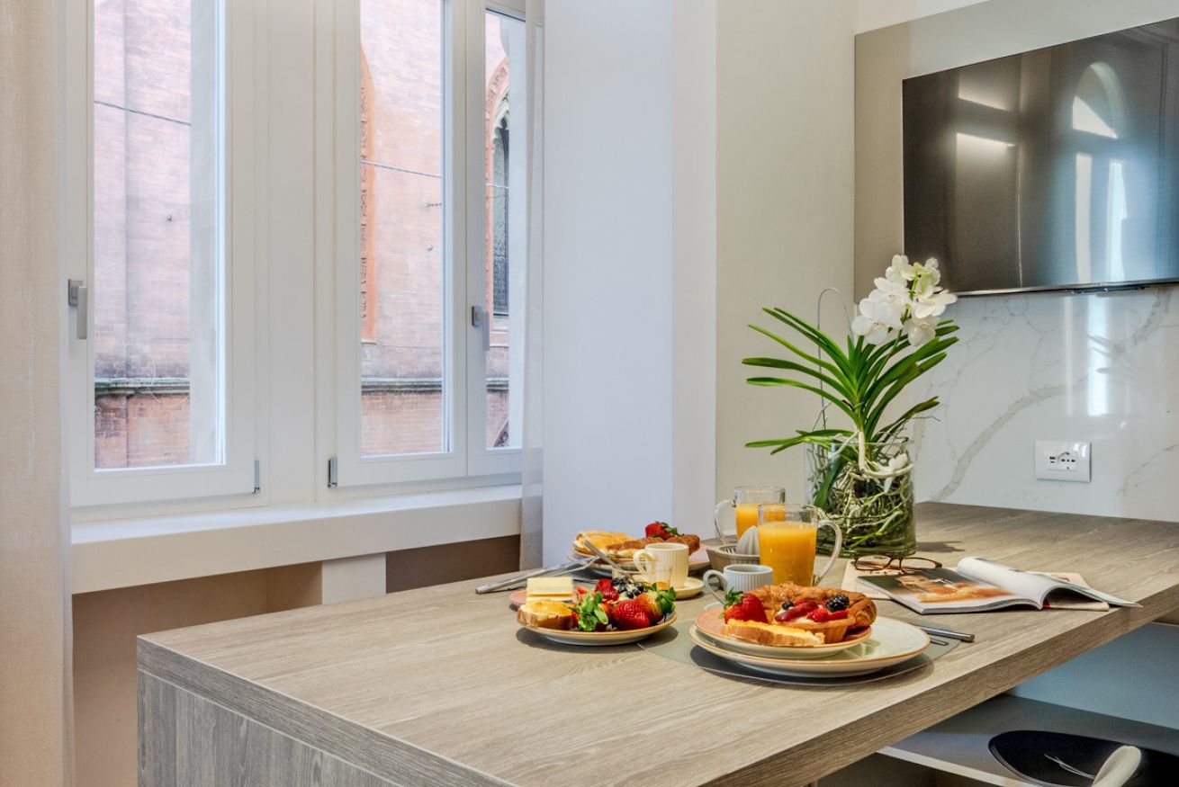 Moderno e sofisticato appartamento dotato di tutti i comfort situato in pieno centro a Bologna.