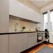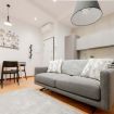 Varcando la porta di ingresso ci troviamo nella zona living elegantemente arredata. L'angolo cottura è perfettamente attrezzato.