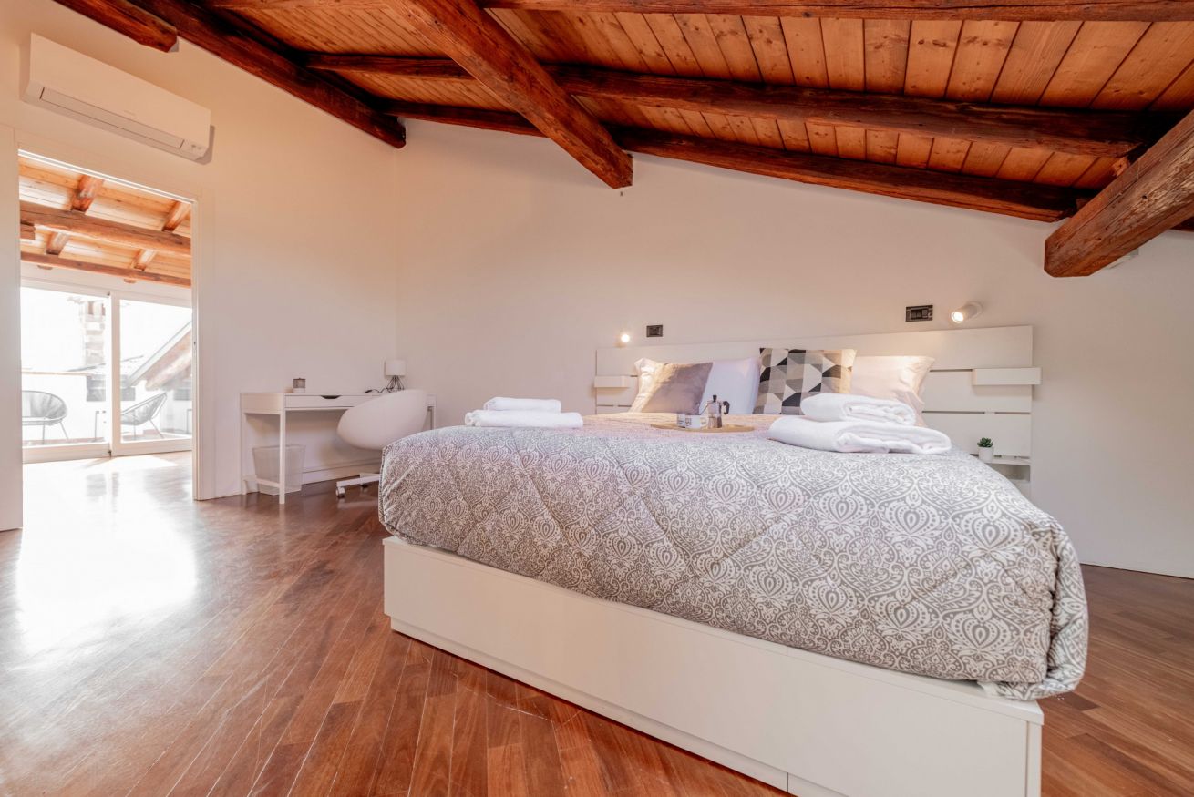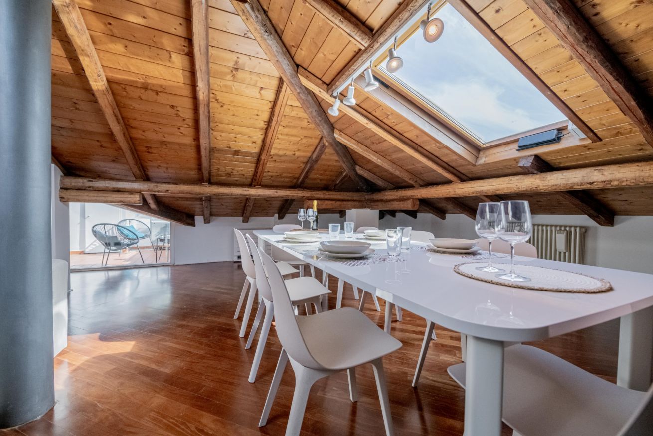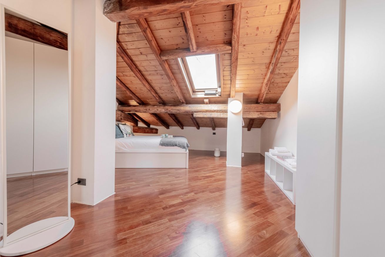 Luminoso ed elegante attico dotato di terrazza con vista sul centro storico. RK Attico Indipendenza è situato a due passi dai principali punti di interesse e dalla stazione centrale. Possibilità di posto auto scoperto nel condominio.