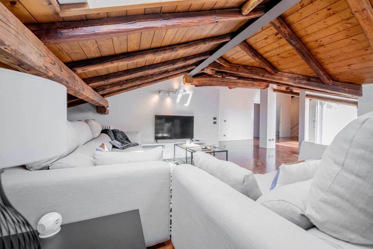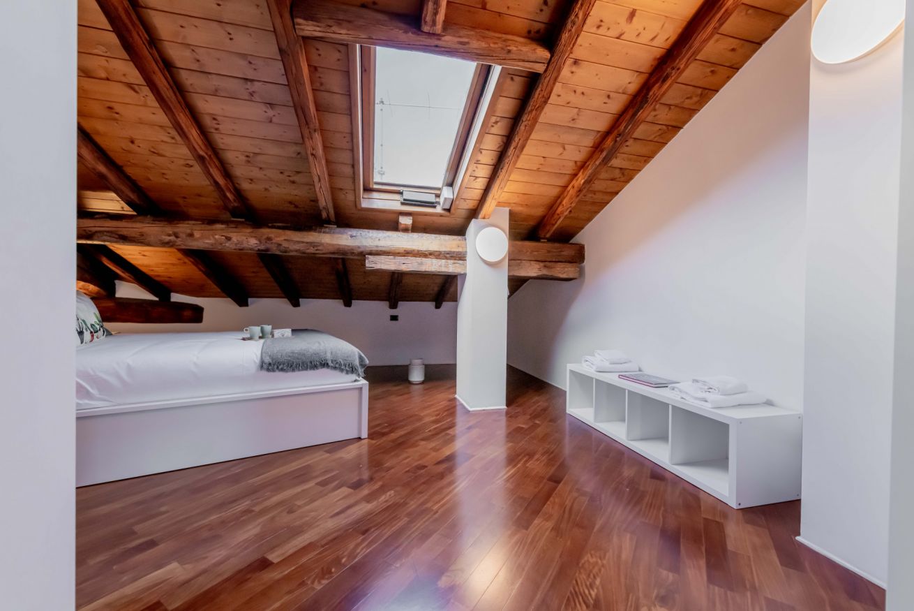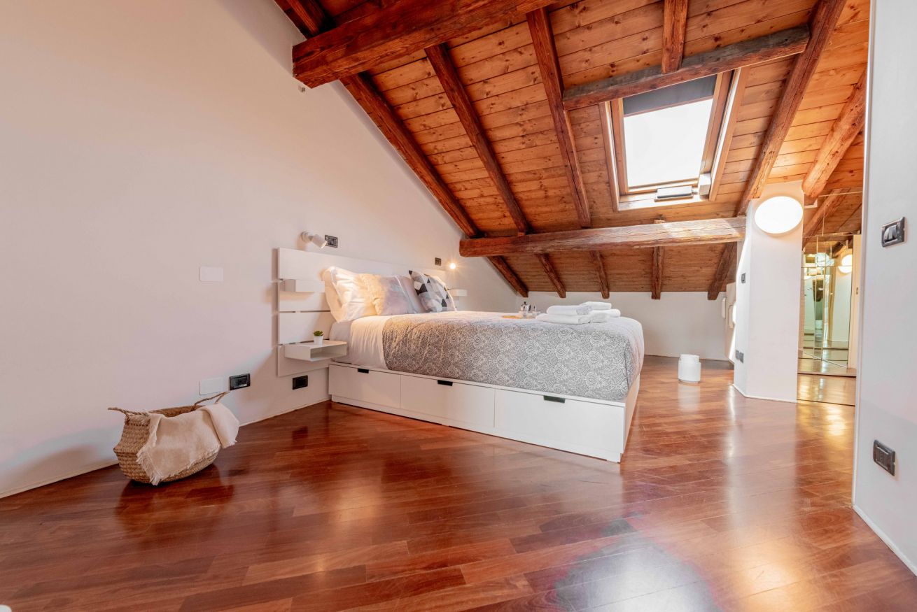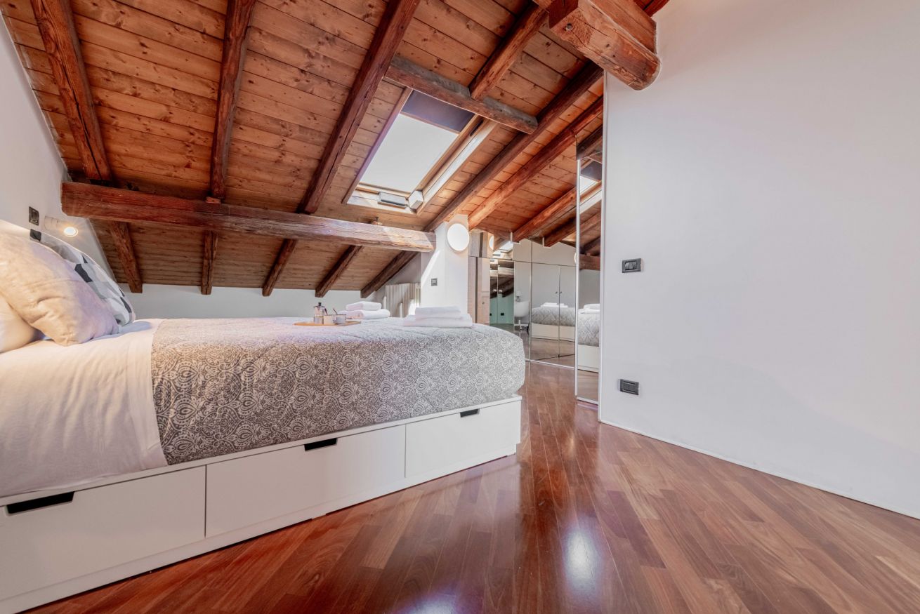 Luminoso ed elegante attico dotato di terrazza con vista sul centro storico. RK Attico Indipendenza è situato a due passi dai principali punti di interesse e dalla stazione centrale. Possibilità di posto auto scoperto nel condominio.