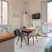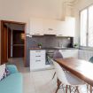 Varcando la porta di ingresso troviamo la zona giorno con il nuovo angolo cottura perfettamente attrezzato dal quale si accede ad un delizioso balcone.