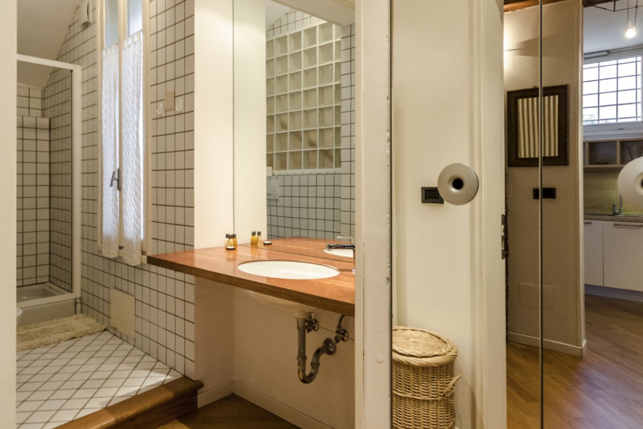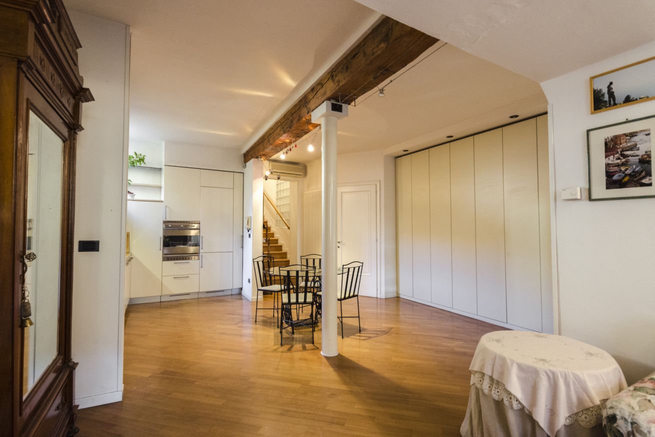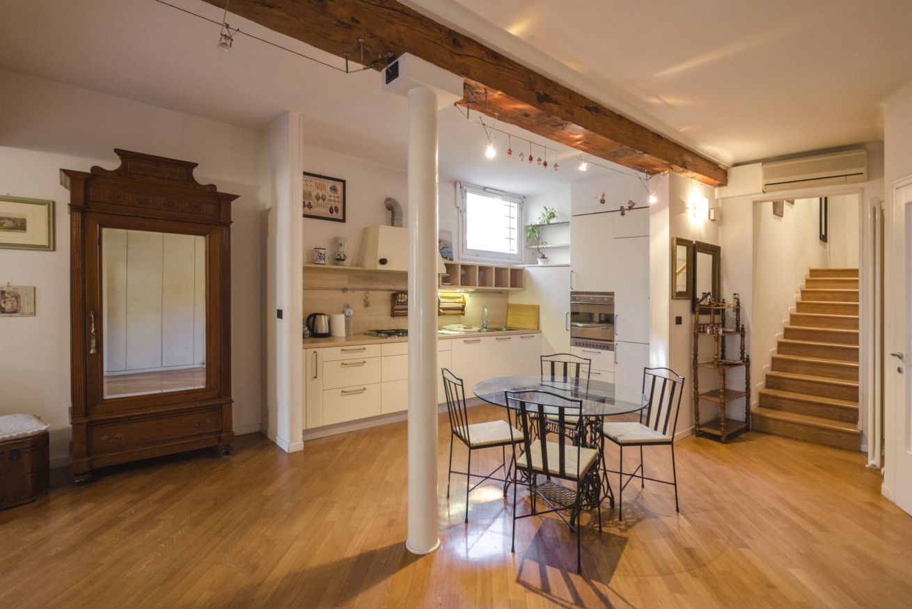 Elegante appartamento in palazzo signorile nel cuore di Bologna, dotato di tutti i comfort, composto da un ampio open space oltre camera da letto e bagno.