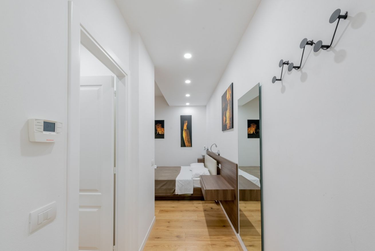 Delizioso appartamento con terrazzo abitabile nel cuore del centro storico di Bologna sito al 1 piano (con ascensore) di elegante palazzo. L'appartamento ed il condominio sono entrambi di recentissima ristrutturazione e godono di una posizione unica, a pochi metri dalle 2 torri, simboli di Bologna.